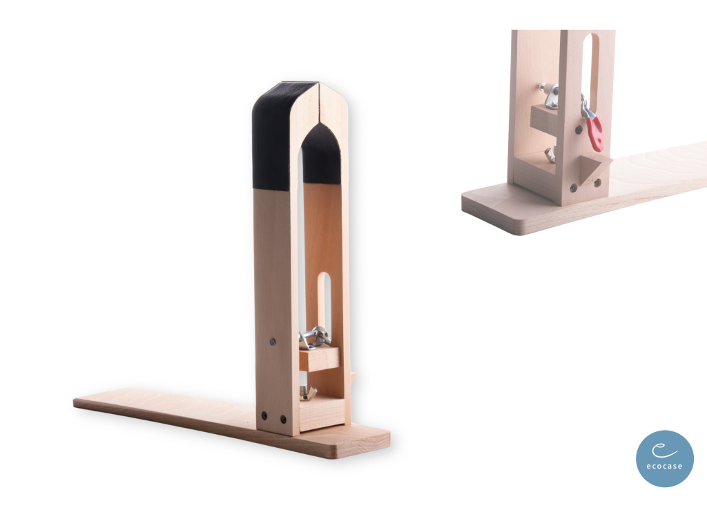 Sedlářský koník je nenahraditelný pomocník při ručním šití. Upnutí do jeho čelistí vám umožní pohodlně šít oběma rukama. Upnutí je zajištěné pákovou svorkou, u které lze regulovat sílu přítlaku. Doporučuji si čelisti v místě upnutí obalit přírodní usní, aby nedošlo k otlaku výrobku - zároveň vám useň zajistí prvnější stisk. Koníka snadno upevníte pomocí svorky ke stolu a můžete pracovat. Tento model má dobře řešené upnutí, díky kterému se visící nit shora nemá o co zachytit a vy můžete pohodlně šít. Do koníka snadno upnete i výrobek velký 25 cm - to je vzdálenost od svorky k vrcholu čelistí. Upněte výrobek a začněte šít :).
